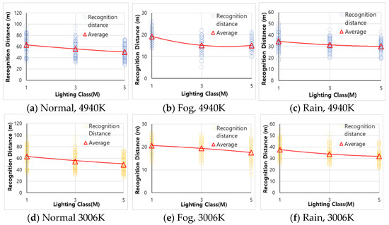 - Under normal weather conditions, the difference in obstacle recognition distance by color temperature is not significant when the road lighting level is the same, but in rain and fog situations, 3006 K (yellow light) was found to have a longer obstacle recognition distance than 4940 K (white light), and the difference was up to 21.87%.