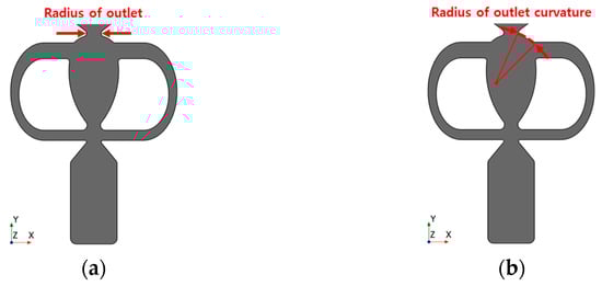 Design parameter. (a) Radius of outlet. (b) Radius of outlet curvature.
