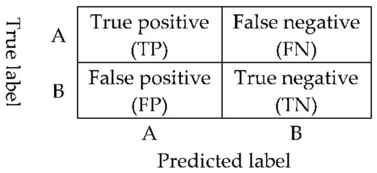 The confusion matrix is a table used to evaluate the performance of a classification model, as shown in Figure 6, which demonstrates the relationship between the model’s predictions on the test set and the true labels. Confusion matrices are mainly used for binary classification problems, but can be extended to multi-category classification. In the confusion matrix, the rows represent the actual categories, and the columns A represent the categories predicted by the model. Equation (3) is the formula for the accuracy rate:
