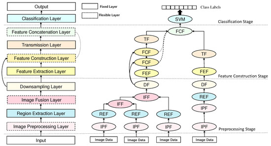 The feature extraction layer extracts features from the image region. The feature construction layer constructs features based on multiple types of features. The transfer layer decides whether to pass the effective information generated by the feature construction layer to subsequent layers, based on the type of input. The feature concatenation layer combines the input data into a feature vector. The classification layer utilizes a fixed classification algorithm to conduct predictive classification based on the input features, ultimately outputting the predicted class labels.