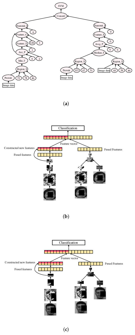 The datasets used in this paper are available at the following URLs: FEI Face Database (accessed on 29 January 2024) (https://fei.edu.br/~cet/facedatabase.html), Cambridge ORL Face Database (accessed on 29 January 2024) (http://cam-orl.co.uk/facedatabase.html), JAFFE Database (accessed on 28 January 2024) (https://www.kasrl.org/jaffe_download.html), and KTH-TIPS Material Database (accessed on 6 February 2024) (https://www.csc.kth.se/cvap/databases/kth-tips/credits.html). The code for this manuscript has been uploaded to GitHub, available at https://github.com/zzq12-zzq/Automatic-Feature-Construction-Based-Genetic-Programming (accessed on 29 January 2024).