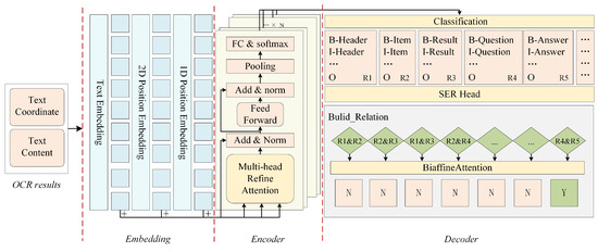 The RE task focuses on discerning relationships among entities of the predicted classes. For this purpose, our approach involves building all possible relationship pairs for all entities from a given MER image. These pairs are then fed into the biaffine attention [34] classifier. The RE decoder processes the MER images to produce our predefined key–value representation of billing-like departmental, clinical diagnostic results.