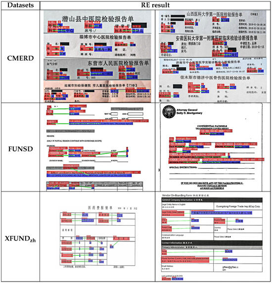 To evaluate the generality of the proposed method, we tested the KIE model on two public datasets, FUNSD and XFUND. A comparison with prior models, as detailed in Table 4, shows that our RVI-LayoutXLM outperformed others, achieving the best F1 scores for both the SER and RE tasks on XFUNDzh and FUNSD. This underscores the robust generalizability of our approach.