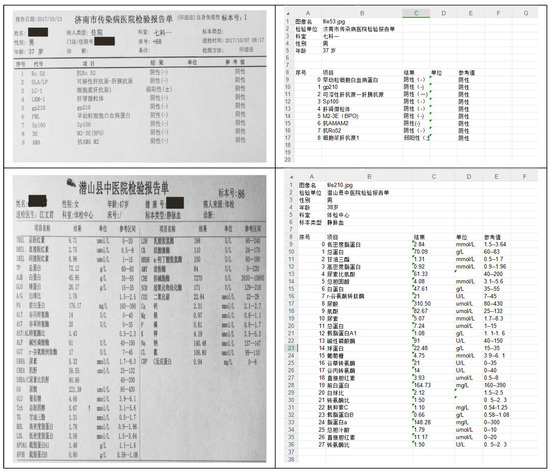 Finally, the information processed by RVI-LayoutXLM and RIFD-Net is unified in the post-processing module. The goal is to concatenate the four key entities of predefined entities, namely the project name, result, reference range, and unit, with the table header information, and output them uniformly into an Excel spreadsheet. Some of the visualization results are presented in Figure 15, Figure 16, Figure 17, Figure 18 and Figure 19.