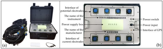 - Cheng, H.; Cui, J.Q.; Fu, G.H.; Fu, S.Y.; Zhong, X.Q. Precise current encoding signal transmitting system for measuring electrical parameters of rock and ore. J. Cent. South Univ. (Sci. Technol.) 2021, 52, 994–1003, (In Chinese with English Abstract). [Google Scholar]