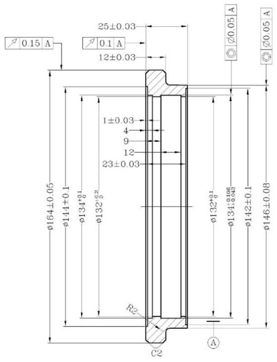 The rotational inertia of the inertia ring is determined by its structural dimensions, as shown in Figure 8. The dimensions are calculated using Formula (26) [22]; the specific dimensions are shown in Figure 8.