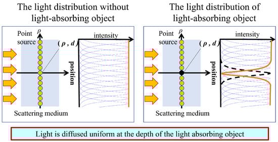 The transillumination image is the blurred shadows of the absorbing structures in a turbid medium, such as the collection of point absorbers. As the depth of the absorbing structure increases, the resulting image exhibits progressively more pronounced blurring. Additionally, acquiring light signals when light penetrates thick body parts is challenging. This challenge may also be reflected in breast light or blood vessel finder applications currently on the market [