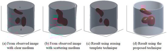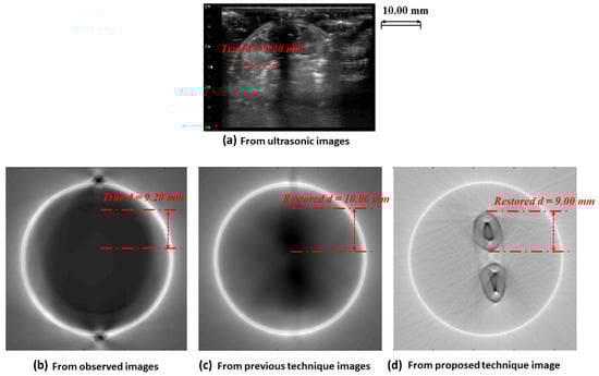 Figure 11d depicts the result of the proposed technique, with a reconstructed object width of