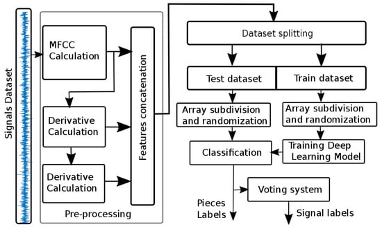- A proposal to use MFCC concatenated with their first two time derivatives as a feature space, which can be directly fed into DL classification algorithms. Combined features from MFCC have been proven to be efficient in different application fields of machine learning and DL [36].