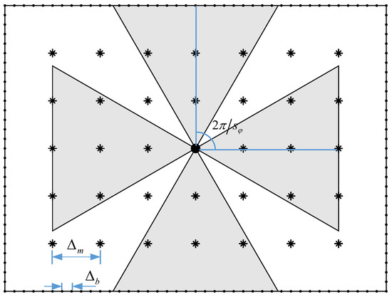 Using the uniform grid sampling model, boundary , measurement area and azimuth angle are uniformly sampled, and the sampling intervals are , and respectively. And is the number of sampling points in azimuth angle . It is considered that in order to guarantee the accuracy of the layout plan. Boundary has and sample points on the x and y axes, respectively, whereas measurement area has and sampling points on the x and y axes, respectively, once the sampling interval is determined. It is shown in Figure 2 that . Therefore, the value ranges of could be a finite set of discrete points, and the continuous problem is transformed into a discrete problem.