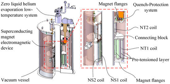 The magnet utilizes a zero-liquid helium evaporation system for cooling. Given the necessity for a room-temperature aperture of ≥200 mm, the installation of a cold screen and vacuum chamber is imperative between the room-temperature aperture and the inner diameter of the magnet. Drawing from practical experience, a minimum space of at least 20 mm needs to be allocated on one side. Therefore, the predetermined diameter for the magnet’s cooling aperture is set at 246 mm.