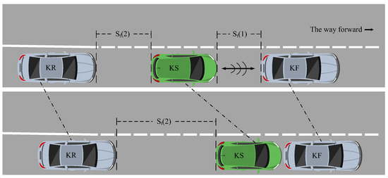 Vehicles exhibiting various motion states exert distinct impacts on the distribution of their potential field; notably, velocity and acceleration play crucial roles in shaping the potential field’s distribution. To ensure that the following vehicle does not collide with the leading vehicle during braking, it should be ensured that the distance between the leading and following vehicles during braking is not less than the minimum safety distance . Therefore, the range of the repulsive field distribution is corrected as