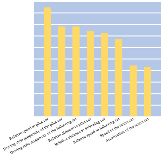 Figure 12 displays the significance of various features within the risk level prediction model, highlighting the pivotal role of interaction attributes in determining risk. The most critical feature is the relative speed to the lead vehicle, underscoring its impact on risk assessment. Equally significant are the relative distances to the vehicles ahead and behind, indicating their substantial influence on risk evaluation. The driving style propensity of the driver ranks as the second and third most influential factors, respectively, showcasing its considerable effect in modeling car-following behavior. The notable impact of driver style propensity on additional crash likelihood emphasizes its relevance in car-following scenarios. This analysis of feature importance not only aids in identifying key risk influencers but also serves as a valuable resource for enhancing risk-management strategies and informing driver education programs.