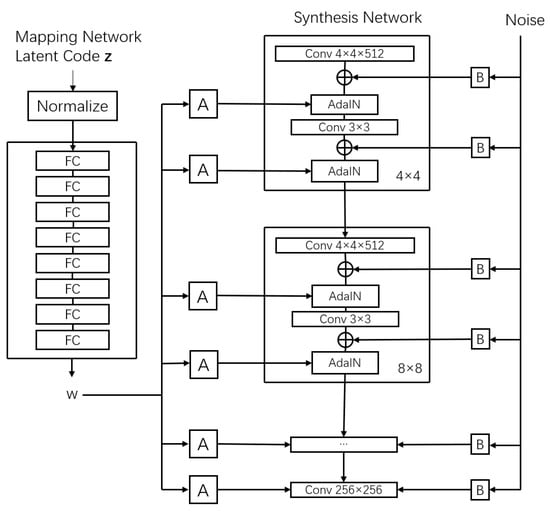- Karras, T.; Laine, S.; Aila, T. A Style-Based Generator Architecture for Generative Adversarial Networks. In Proceedings of the 2019 IEEE/CVF Conference on Computer Vision and Pattern Recognition (CVPR), Long Beach, CA, USA, 15–20 June 2019. [Google Scholar]