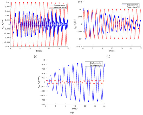 The related SP values follow the values given in Table 1. For the six state variables in Equation (12) that need to be controlled, we might as well assume that the initial value of the state variable vector is , and the desired target trajectories are: