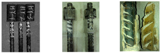 Rock bolting is an important means of improving the mechanical properties of a rock mass, and fully grouted bolts, which have the advantages of good support effects and low support costs, are widely used in the field of civil, tunnels and mines, as well as other elements of rock engineering [1,2,3,4]. The fully grouted bolting system is made of surrounding rock, grout, bolt, Bolt-Grout and grout-rock interfaces. The bolting effect of fully grouted bolts are mainly influenced by the type of bolt [5,6], the grout material [7], the type of surrounding rock [8,9], and the interaction at the Bolt-Grout interface [10,11]. Extensive pullout experiments show that the Bolt-Grout interface is the weakest component, and its failure is one of the main forms of failure of the bolting system [10,11,12], as seen in Figure 1. The Bolt-Grout interface is an important part of the load transfer of the bolting system, and its shear strength is primarily determined by the bonding force, frictional force, and mechanical interlock force between the interfaces [13]. In addition to the surrounding pressure, the frictional force and mechanical interlock force are influenced by the bolt profile [2,11,13,14]. Therefore, studying the shear characteristics of the Bolt-Grout interface is essential to improving the support impact of rock bolting systems [15].