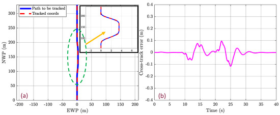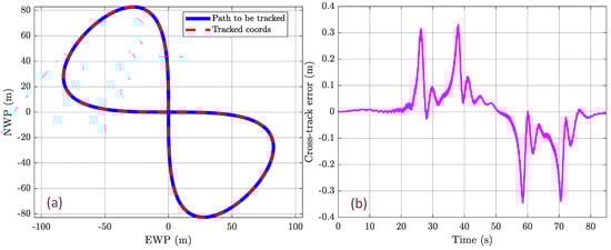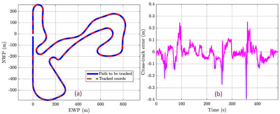 The figure-8 trajectory shown in Figure 11a combines tight turns with straightaways, requiring the vehicle to constantly adjust its steering angle and lateral acceleration. This tests its ability to handle a wide range of curvature demands. The continuous changes in curvature expose potential weaknesses in the control algorithms, revealing any instability or overcorrections in the steering system.
