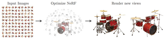 12. Mildenhall, B.; Srinivasan, P.P.; Tancik, M.; Barron, J.T.; Ramamoorthi, R.; Ng, R. NeRF: Representing Scenes as Neural Radiance Fields for View Synthesis. Commun. ACM 2021, 65, 99–106. [Google Scholar] [CrossRef]
