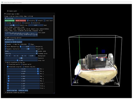 Transitioning to the next phase (S2), the process involves obtaining a JSON file containing camera parameter values for each captured image. Colmap [21] is used in this work to generate this file. The subsequent step unfolds as Instant NeRF takes center stage, utilizing the acquired JSON file to adeptly reconstruct the NeRF model within a matter of seconds, as showcased in Figure 6.