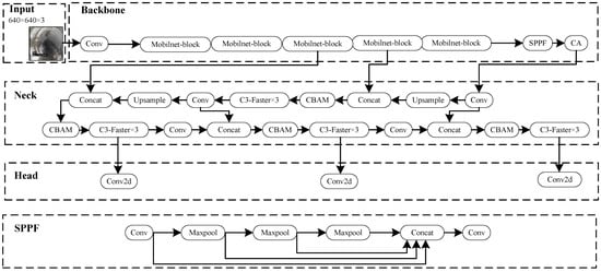 - To counteract the reduction in detection accuracy resulting from the lightweight design, a convolutional block attention module (CBAM) and channel attention (CA) modules are integrated. These attention mechanisms help the network to adapt to the challenging visual characteristics of sewer environments.