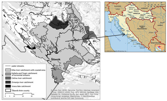 The Krka River is located on the central Adriatic coast of Croatia (Figure 5) [28]. It is known for its attractive karst lakes, waterfalls, and long estuaries. The river system is comprised of several tributaries, cascading lakes, waterfalls, and long karstic estuaries.