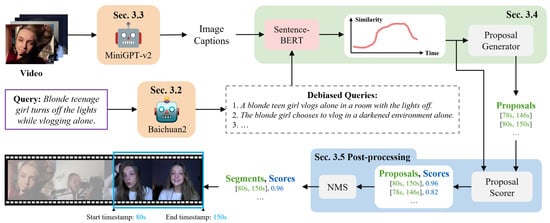 - Huang, Y.; Yang, L.; Sato, Y. Weakly supervised temporal sentence grounding with uncertainty-guided self-training. In Proceedings of the IEEE/CVF Conference on Computer Vision and Pattern Recognition (CVPR), Vancouver, BC, Canada, 17–24 June 2023; pp. 18908–18918. [Google Scholar]