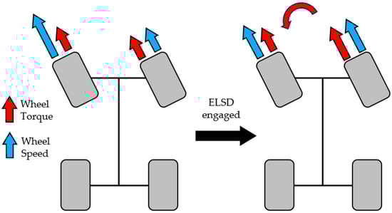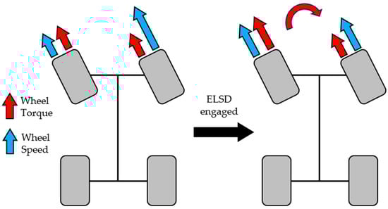 Lateral control systems for high-performance vehicles are developed to prevent the driver from losing control of the vehicle and to improve the cornering agility of the vehicle. Nevertheless, front-wheel drive (FWD) high-performance cars can be developed in combination with high-power engines based on existing small vehicle platforms or subcompact vehicle platforms []. Therefore, such FWD high-performance cars can be developed at a relatively low cost. However, the inner wheels of FWD vehicles spin when a driving torque greater than the inner-wheel grip is applied due to the weight transfer during acceleration while turning. This spinning results in understeer and a reduction in exit acceleration.