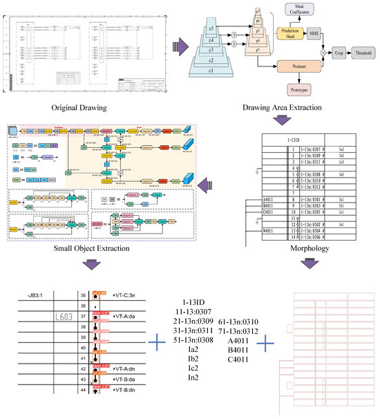 - The small object detection module in the YOLOv7-MS is employed within the terminal block area for rapid detection of graphical elements and text positions in the diagrams.