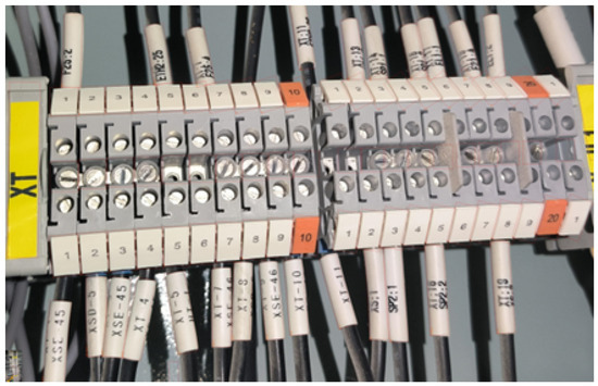 As shown in Figure 6, the physical elements of the secondary cabinet terminal blocks only include the terminal block headers, terminal sequence numbers, and external terminal row names. Therefore, the constructed image-based model is relatively simple, with the following specifics: