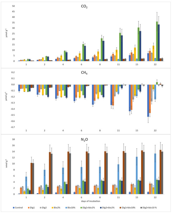 Pastorelli, R.; Casagli, A.; Rocchi, F.; Tampio, E.; Laaksonen, I.; Becagli, C.; Lagomarsino, A. Effects of Anaerobic Digestates and Biochar Amendments on Soil Health, Greenhouse Gas Emissions, and Microbial Communities: A Mesocosm Study. Appl. Sci. 2024, 14, 1917. https://doi.org/10.3390/app14051917