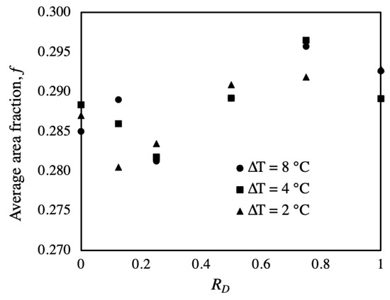 Average area fraction with respect to RD variation for different total temperature drops.