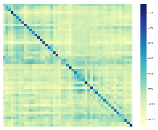 Taking the textual modalities of the samples in the CMU-MOSI dataset as an example, as shown in Figure 4, the model maximizes the diagonal elements in the intercorrelation matrix in order to capture the correlation between the different attentional mechanisms during the training process. At the same time, nondiagonal elements are minimized in order to reduce redundant information in this process.