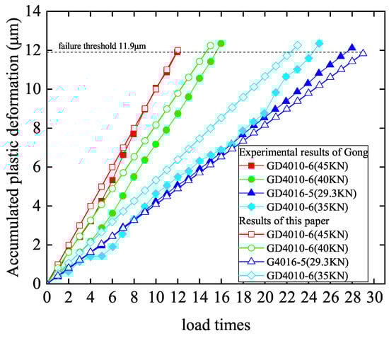 Figure 8 shows the relationship between the accumulative plastic deformation calculated in this paper and compares it with Gong’s test results [2]. The theoretical and experimental values of the accumulative plastic deformation of the four ball screws are in good agreement. The theoretical fatigue elastic life calculated in this paper and Gong’s experimental results and relative errors are shown in Table 2. The errors between theoretical values and experimental values of the four ball screws are less than 8%, and the relative errors calculated by Gong are less than 15%. Thus, the model introduced in the present study is correct and more accurate than Gong’s model.