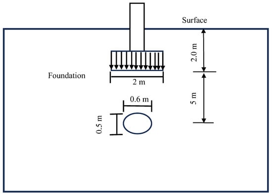 The parameters listed in Table 1 are consistent with those used by Kiyosumi et al. [18] who documented void sizes in Japanese uncemented calcareous sediments ranging from less than 1 m to approximately 10 m. Furthermore, numerous studies on cavity-related issues, including those by various authors, have employed cavities within a similar size range as the present study [9,13,16]. In certain instances, larger values were utilized, with the shear strength parameters of the soils being comparable [8,12], etc. Consequently, the selected cavity sizes in Table 1 are deemed reasonable, aligning with established practices observed in the relevant literature.