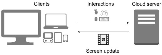 The last component is the cloud server. The cloud server is in charge of processing client requests and sending the answers back through the network. The responses could be screen updates according to a player’s movement in cloud gaming or window movement in remote desktop CIAs. Additionally, they could be the result of a database query or data processed in the cloud server in an interactive web application, prompting a screen update for the client. In CIAs, users interact expecting near-real-time responses. Hence, the server updates the graphical representation on the client so fast that the user does not notice that the application is not running locally.