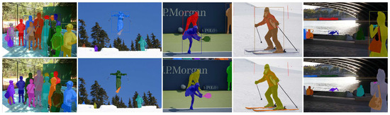 - Chen, K.; Ouyang, W.; Loy, C.C.; Lin, D.; Pang, J.; Wang, J.; Xiong, Y.; Li, X.; Sun, S.; Feng, W.; et al. Hybrid Task Cascade for Instance Segmentation. In Proceedings of the 2019 IEEE/CVF Conference on Computer Vision and Pattern Recognition (CVPR), Long Beach, CA, USA, 15–20 June 2019; IEEE: Long Beach, CA, USA, 2019; pp. 4969–4978. [Google Scholar]