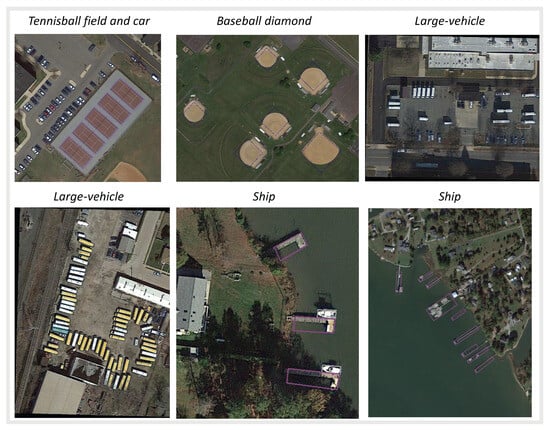 - Xia, G.; Bai, X.; Ding, J.; Zhu, Z.; Belongie, S.J.; Luo, J.; Datcu, M.; Pelillo, M.; Zhang, L. DOTA: A Large-Scale Dataset for Object Detection in Aerial Images. In Proceedings of the 2018 IEEE Conference on Computer Vision and Pattern Recognition, CVPR 2018, Salt Lake City, UT, USA, 18–22 June 2018; pp. 3974–3983. [Google Scholar] [CrossRef]