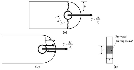 The pin pulls the pin plates owing to the tension induced by the moment, and the tensile force is calculated according to the probable moment at the center of the connector, , and arm length, , as follows (see Figure 3):