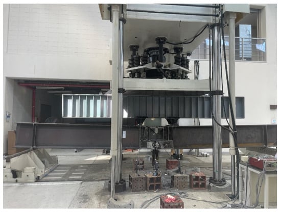 Figure 6 shows the the setup. A four-point bending test was conducted to apply a moment exclusively between the central supports. LVDTs were installed at the midpoint and ends of the simply supported beam to measure the deflection and rotation angle.