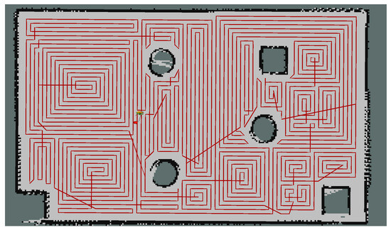 (1) Site Coverage: In this paper, let represent the already covered area, S represent the total area of the working environment, and represent the area covered by obstacles. Therefore, the coverage rate r of the full-coverage path planning is calculated as .