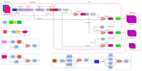 (1) Input Layer: Images are initially fed into the YOLOv5 network. This algorithm supports various input sizes, allowing users to balance speed and precision. Users can adjust the algorithm’s performance according to specific requirements by choosing different input sizes, better adapting it to various application scenarios.