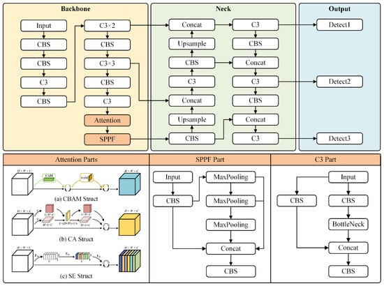 The YOLO series models, grounded in deep learning, are capable of performing object detection tasks. This paper introduces three prevalent attention mechanisms (Convolutional Block Attention Module (CABM), Coordinate Attention (CA), and Squeeze-and-Excitation (SE)) into the original YOLOv5 model. These mechanisms are, respectively, embedded into the layer preceding the SPPF (Spatial Pyramid Pooling-Fast) layer within the Backbone module. Consequently, three instrument localization models are derived: CABM-YOLOv5, CA-YOLOv5, and SE-YOLOv5, the structures of which are illustrated in Figure 2. In Figure 2, the CBS (ConvBNSiLU) module is responsible for extracting image features and is one of the fundamental modules used to build the backbone network of YOLOv5.