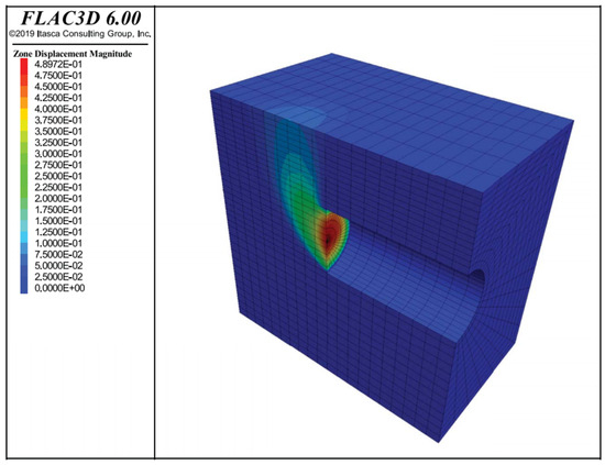 Displacement contour map of the 3D tunnel face numerical model in FLAC 3D.
