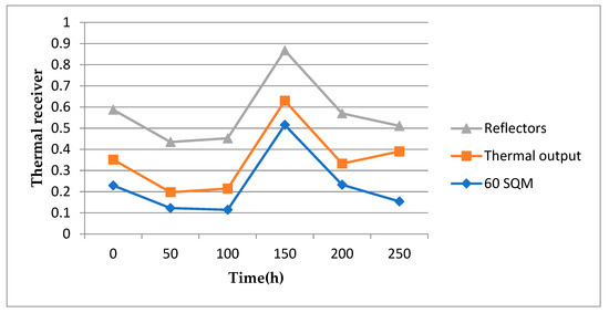 Figure 7 displays the thermal output of 60 SQM reflectors. The most common kind of reflector used in solar thermal electric applications is glass mirrors. In solar concentrators, Fresnel lenses bend and concentrate light rays from a broad region to shine on a specified target. Based on the intended function, the concentrator’s construction material changes. Mirrors are the material of choice for solar thermal concentrators, while glass or clear plastic are acceptable options for BIPV systems. Compared to PV materials, these materials are much less expensive. The chemical properties and vast surface area of porous zeolite allow it to absorb significant amounts of nitrogen under high pressure. Air is compressed and passed over the zeolite in the oxygen concentrator, which causes the zeolite to absorb nitrogen from the air.