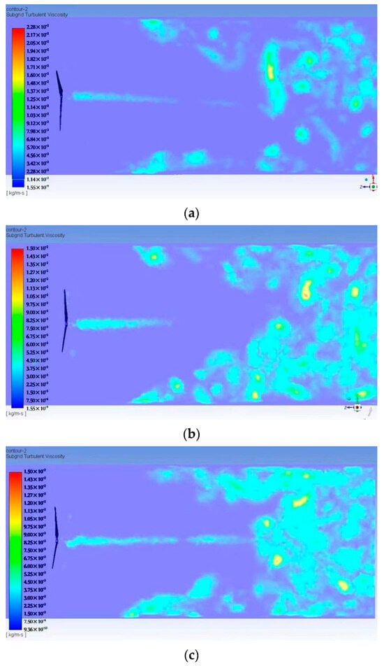 The turbulence model was solved using large eddy simulation (LES). In the calculation, the Poisson’s ratio coefficient is set to 0.45 and the size factor is set to 0.6 to ensure the convergence of the fluid calculation. The iteration step size is set to 1 × 10−5 and the residuals are set to 1 × 10−6.