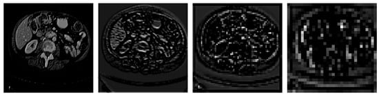 Convolutional filters in deep learning models are designed to learn specific features from images. Each filter within a model layer captures different features. It is widely understood that the early convolutional layers, situated closer to the input, detect basic features like edges and textures. In contrast, the deeper layers identify more abstract features, such as parts of objects []. For example, in the context of analyzing CT images that capture organs, early convolutional layers might detect basic features such as edges and textures of tissues or organ boundaries. These layers are adept at identifying simple patterns and gradients in pixel intensities, which are fundamental components of an image. Moving deeper into the network, the convolutional layers start to recognize more complex and abstract features. These could include specific structures of organs or even patterns indicative of pathological changes. In advanced layers, the network might be capable of identifying and differentiating between complex organ shapes.