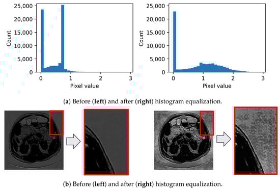 In addition, for enhanced visual analyses that would aid physicians, histogram equalization is implemented on perturbed features. Recognizing the difficulty in visually identifying minute perturbations, a post-processing technique is applied to amplify these feature values. This is achieved using histogram equalization, a technique renowned for its use of the cumulative distribution function []. Histogram equalization is formulated by