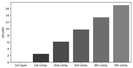 GFLOPS comparison across components, illustrating the GFLOPS for the first layer within the first component and separately for each of the first to fifth components.