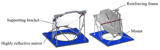 The FFF mirror, composed of a highly reflective mirror, reinforcing frame, and supporting bracket, is designed to ensure efficient high reflection and radiation transmission.