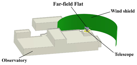 The FFF mirror is shielded from mountain winds by a windshield located southwest of the AliCPT-1 observatory, as shown in Figure 5. To simulate actual working conditions, the size of the flow field model is constrained within the range of the windshield, with a final computation domain size of 30 m × 40 m × 10 m.